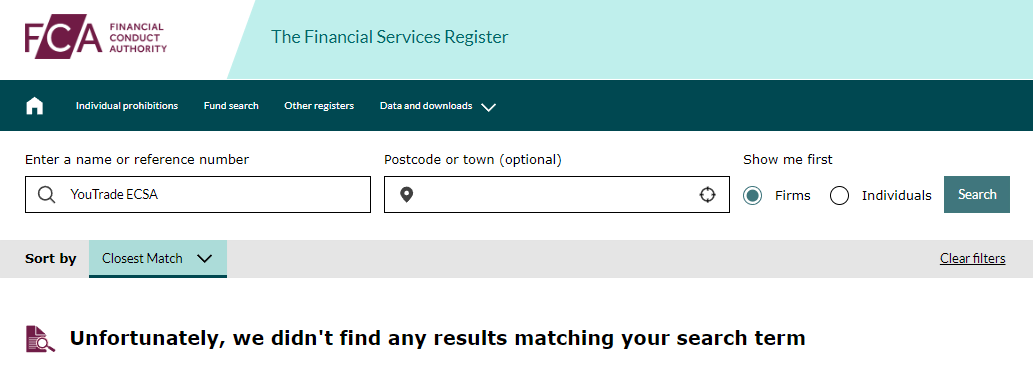 Lastly, it’s necessary to debunk information about regulation by the FCA and the headquarters in Switzerland. If you try to find YouTrade ECSA in the registry of legal entities in Switzerland, you will not succeed, as such a firm is not listed there. Our subject is also absent in the FCA registry. Therefore, there is no regulation here, besides, the company indicates a fake address in Switzerland.